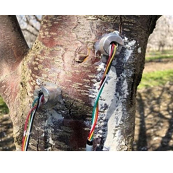 用途: FloraPluse水勢傳感器是為提高農(nóng)業(yè)灌溉和自然資源利用效率而設(shè)計地,許多農(nóng)作物產(chǎn)區(qū)需要灌溉水才能有利于農(nóng)作物生長。然而土壤的灌溉是基于氣候條件、參考蒸散和農(nóng)作物系數(shù)等條件優(yōu)化地,考慮到農(nóng)業(yè)系統(tǒng)中天氣和土壤的時間與空間變異性和不確定性。該傳感器是通過測量植物內(nèi)部的水張力來直接測量樹木水分狀況的指標。傳統(tǒng)上,它被用作與其他水勢狀況指標進行比較的參考。由于測量是直接在載水組織內(nèi)部進行的,因此讀數(shù)準確可靠。該傳感器的測量范圍高達-35bar,通過使用納米多孔膜實現(xiàn)測量。膜孔直徑約為2nm,數(shù)據(jù)非常精準可靠。